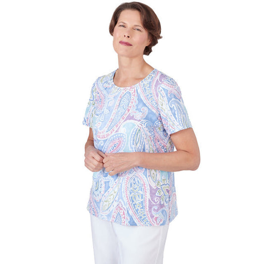 Alfred Dunner Women's Pleated Crew Neck Paisley Short Sleeve Tee