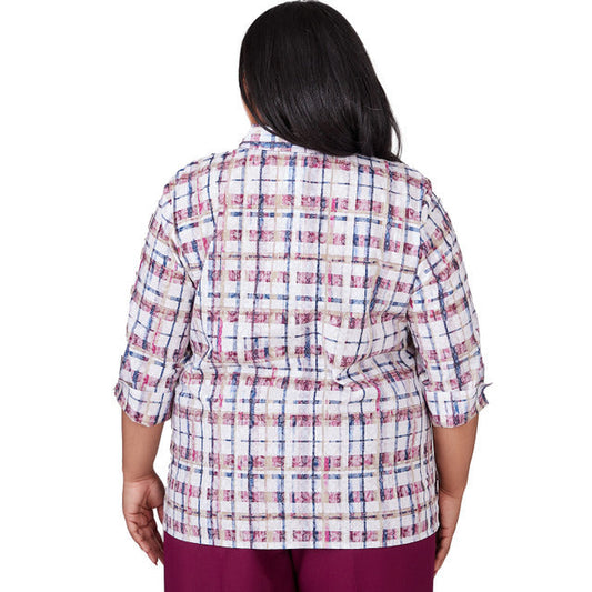 Alfred Dunner Women's Plaid Cuffed Sleeve Button Down Top