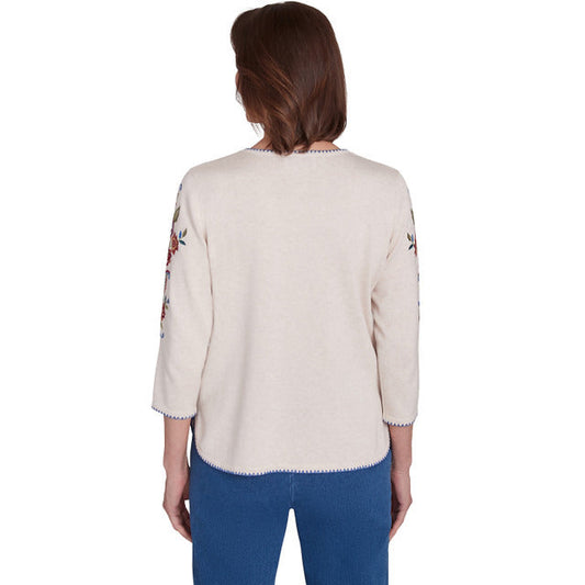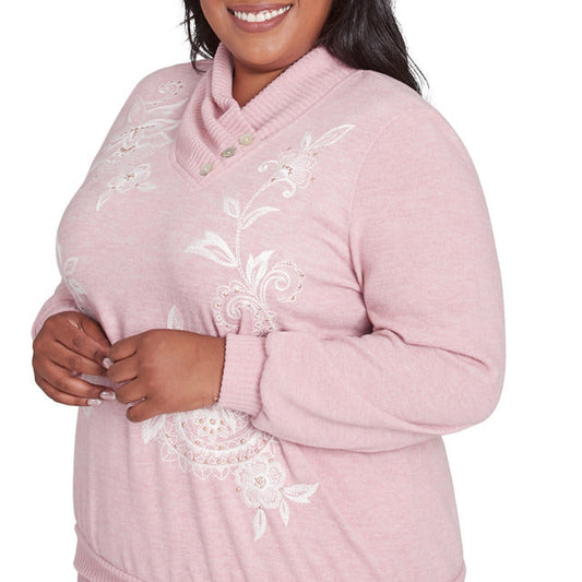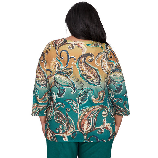 Alfred Dunner Women's Paisley Floral Embroidered Top