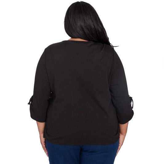 Alfred Dunner Women's Paisley Embroidered Envelope Neck Top