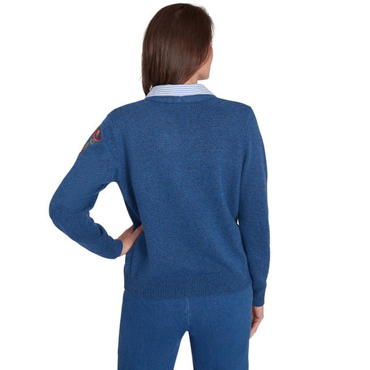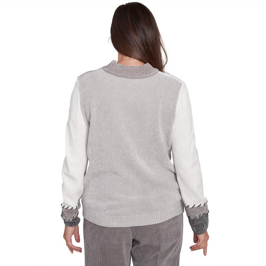 Alfred Dunner Women's Patchwork Knit Long Sleeve Sweater