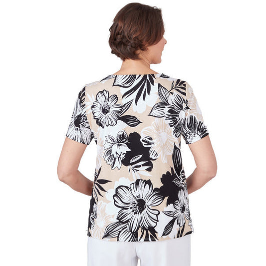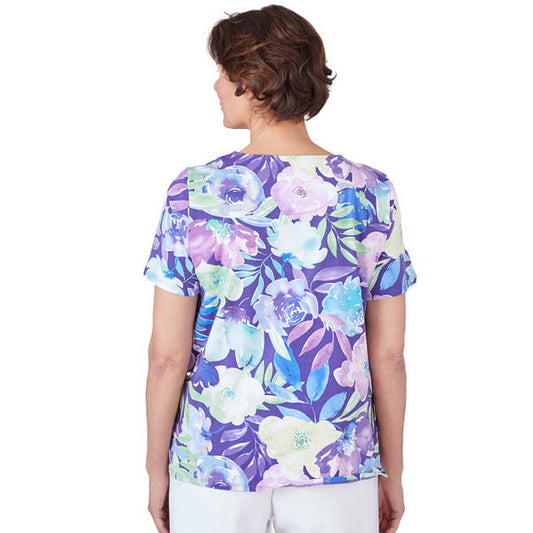Alfred Dunner Women's Pleated Neck Floral Short Sleeve Tee