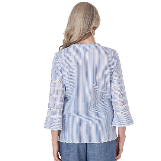 Alfred Dunner Women's Pinstripe Embroidered Button Down Top