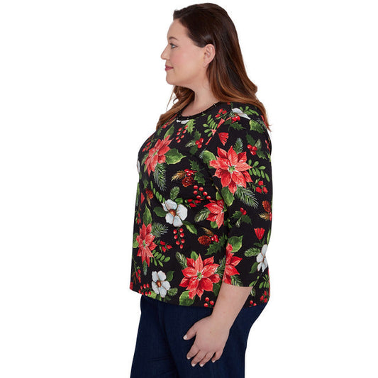 Alfred Dunner Women's Poinsettia Classic Holiday Top
