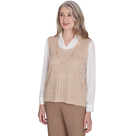 Alfred Dunner Women's Collared Two In One Sweater Vest with Necklace
