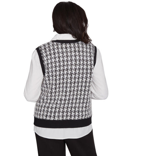 Alfred Dunner Women's Collared Houndstooth Vest Two In One Sweater