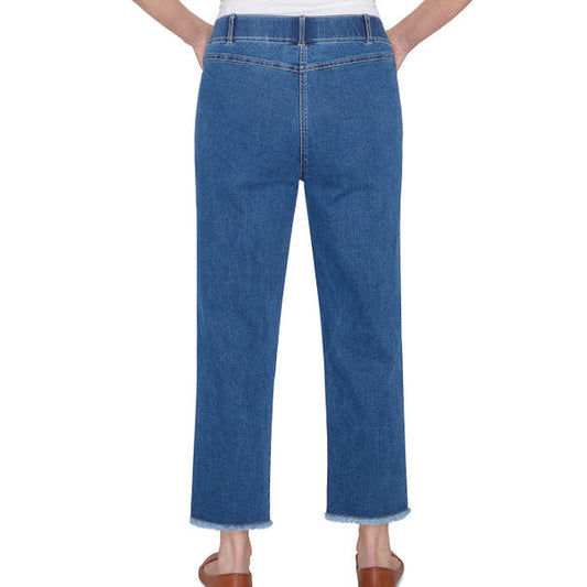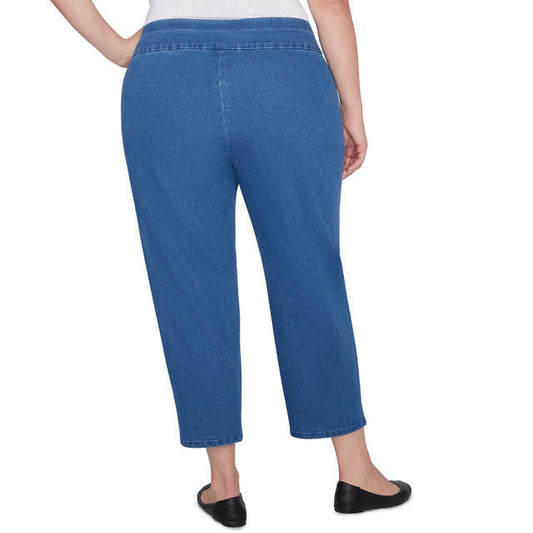 Alfred Dunner Women's Floral Embroidered Denim Ankle Pant