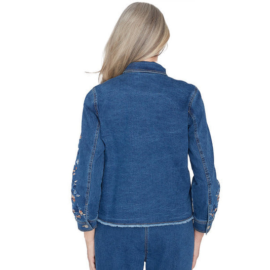 Alfred Dunner Women's Floral Embroidered Fringe Jacket