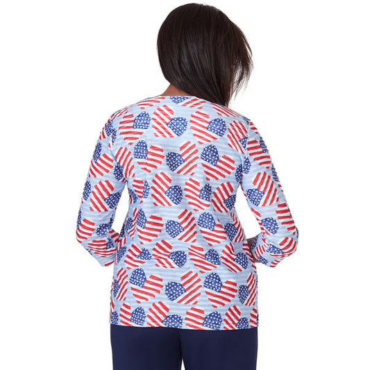 Alfred Dunner Women's Flag Hearts Three Quarter Sleeve Shirt