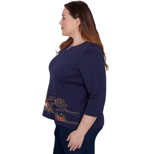 Alfred Dunner Women's Farmhouse Scenic Keyhole Neck Top