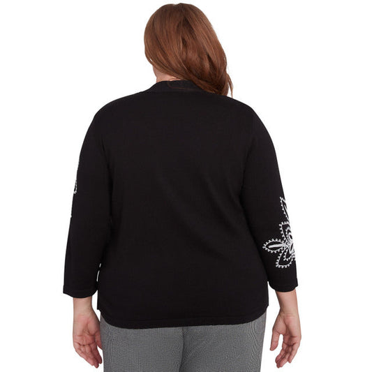 Alfred Dunner Women's Floral Embroidered Two In One Sweater with Necklace