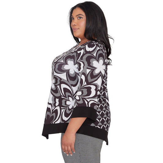 Alfred Dunner Women's Floral Geometric Top with Necklace