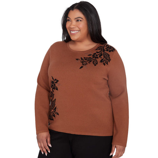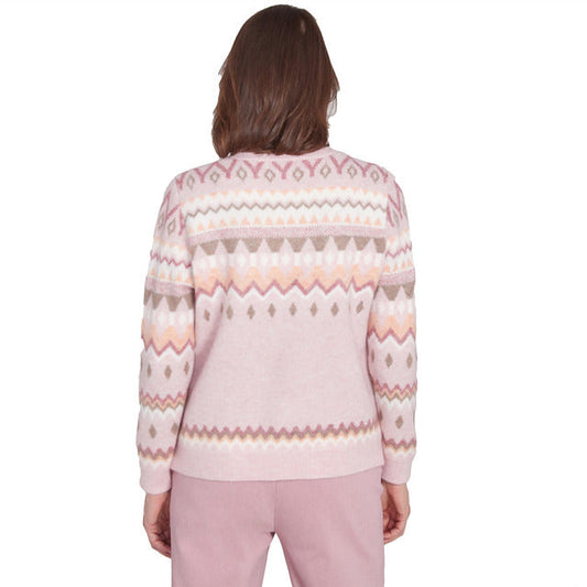 Alfred Dunner Women's Floral Embroidered Fairisle Sweater