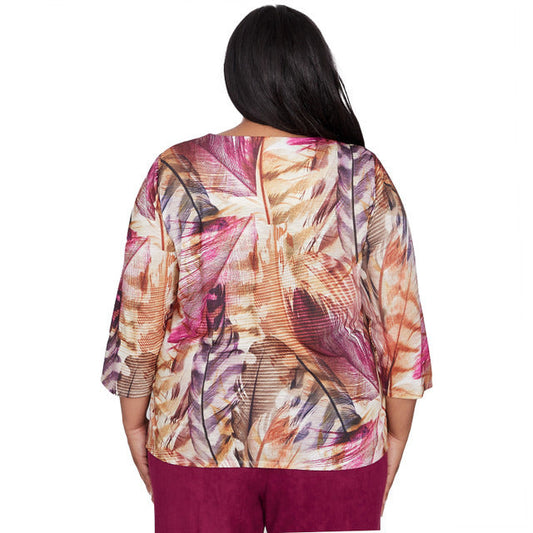 Alfred Dunner Women's Feathers Lace Detailed Top