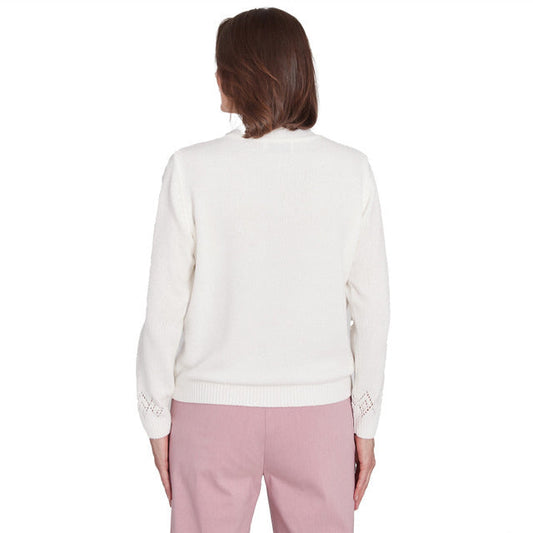 Alfred Dunner Women's Floral Embroidered White Chenille Sweater