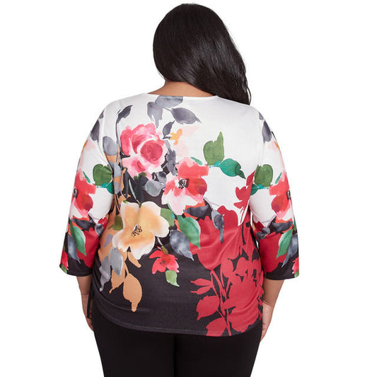 Alfred Dunner Women's Floral Crew Neck with Drawstring Hem Top