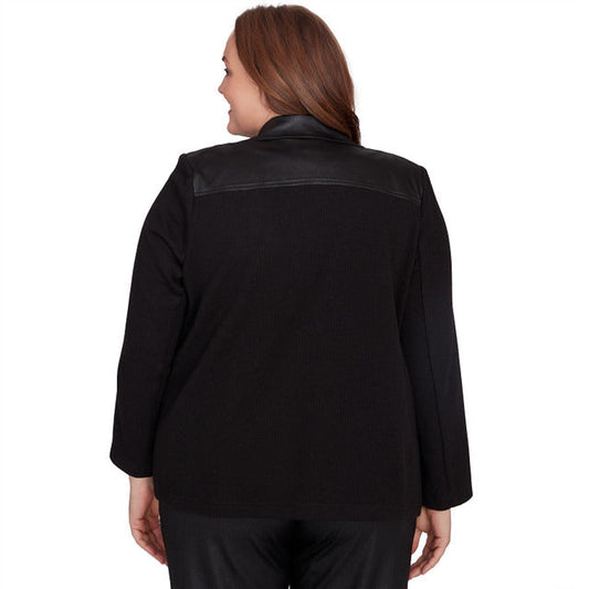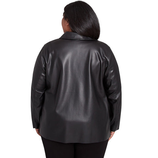 Alfred Dunner Women's Floral Embroidered Faux Leather Jacket