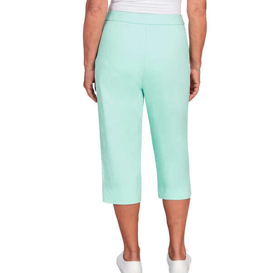 Alfred Dunner Women's Flat Front Split Hem Allure Clamdigger Pant - MIST GREEN