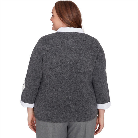 Alfred Dunner Women's Floral Collared Two In One Sweater