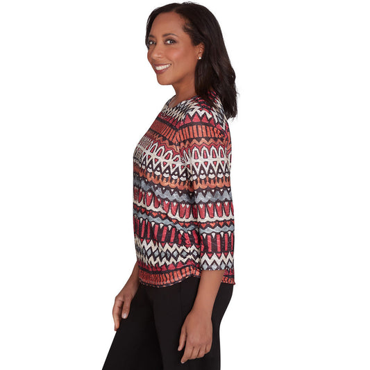 Alfred Dunner Women's Geometric Crew Neck Top