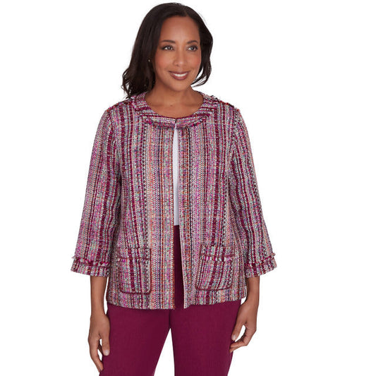 Alfred Dunner Women's Fringe Textured Jacket