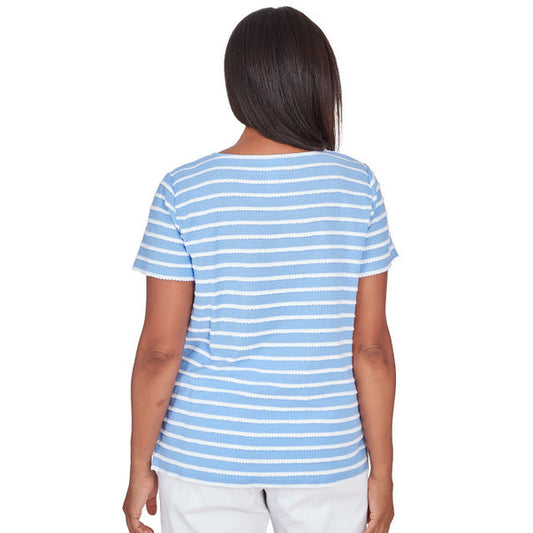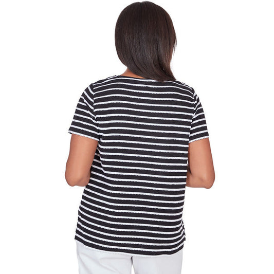 Alfred Dunner Women's Lace Neck Striped Split Hem Tee 1