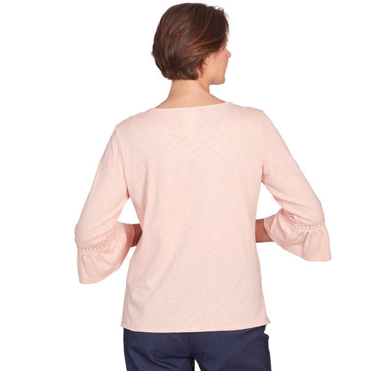 Alfred Dunner Women's Lace Neck Solid Flutter Sleeve Top