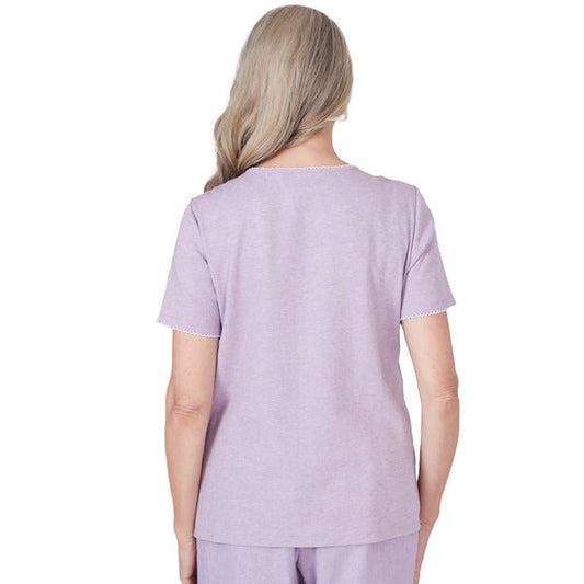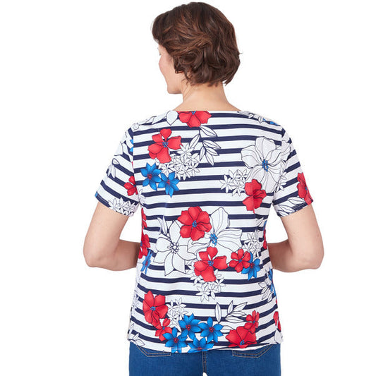 Alfred Dunner Women's Floral Stripe Braided Neck Tee