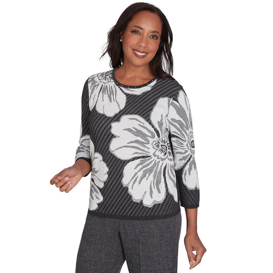 Alfred Dunner Women's Floral Textured Sweater