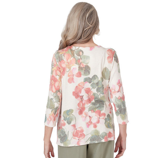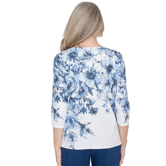Alfred Dunner Women's Floral Shimmer Three Quarter Sleeve Top