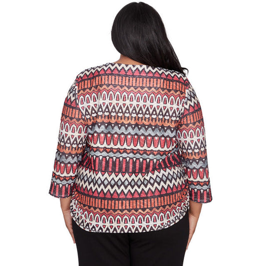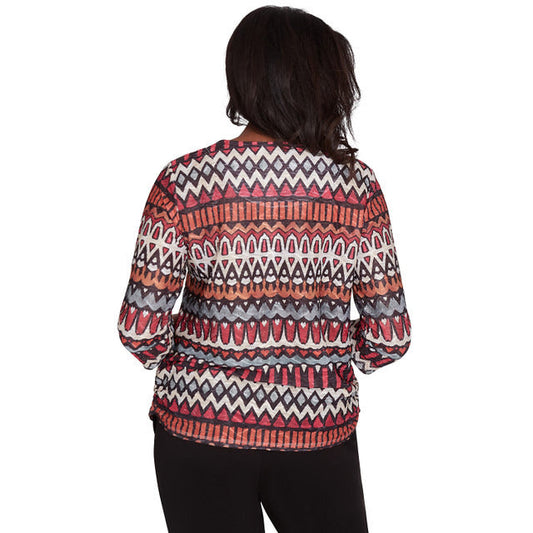 Alfred Dunner Women's Geometric Side Ruche Top
