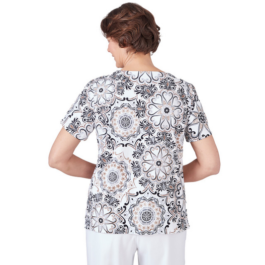 Alfred Dunner Women's Geo Medallion Short Sleeve Crew Neck Tee