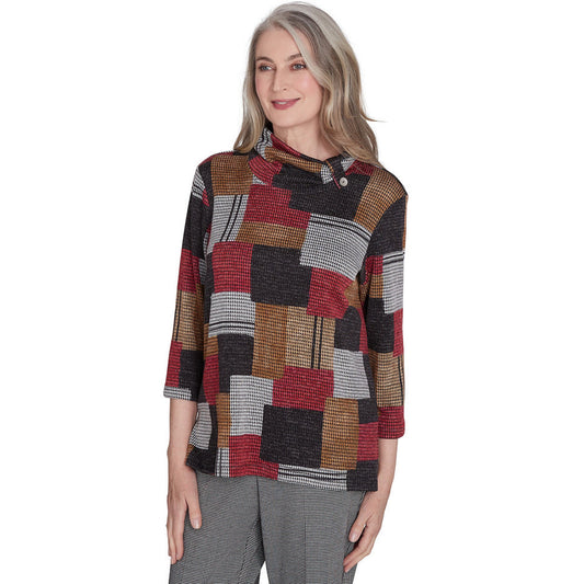 Alfred Dunner Women's Houndstooth Patchwork Cowl Neck Top