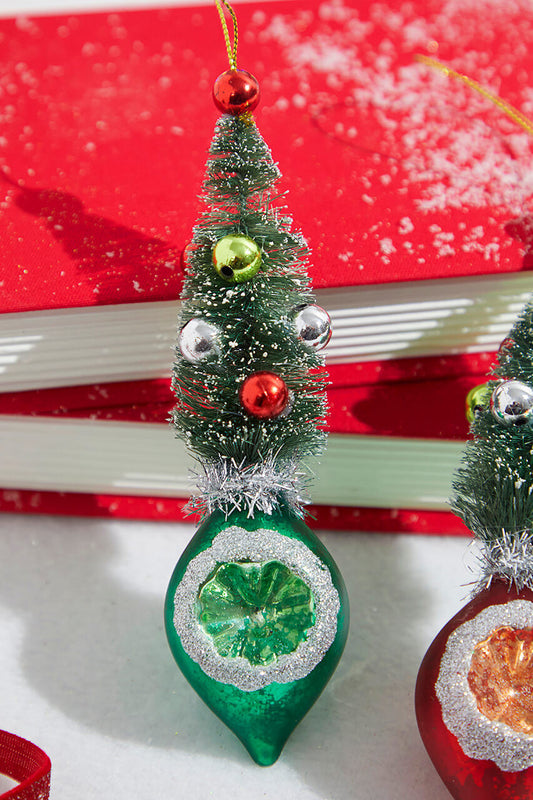 Decorator's Warehouse 9" Glass Reflector with Bottle Brush Tree Ornament