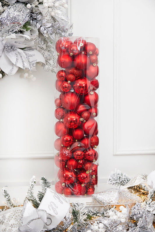 Decorator's Warehouse 80pc Shatterproof Ornament Tub - Christmas Red
