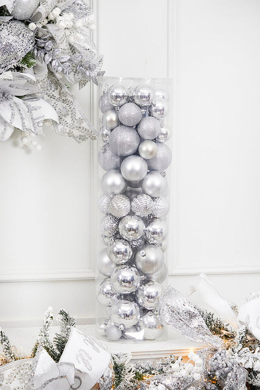 Decorator's Warehouse 80pc Shatterproof Ornament Tub - Silver