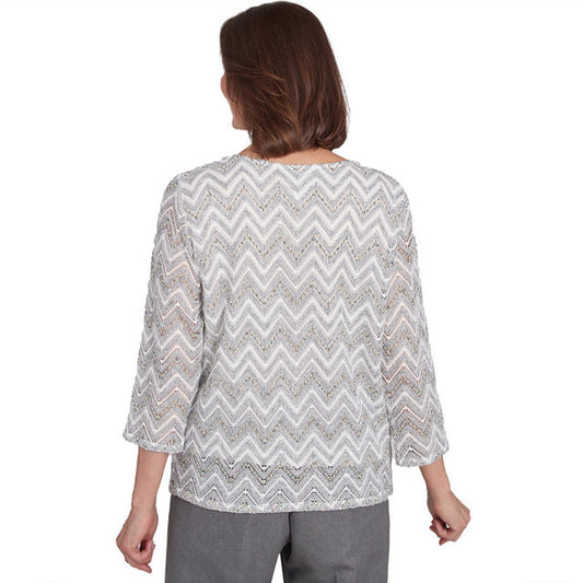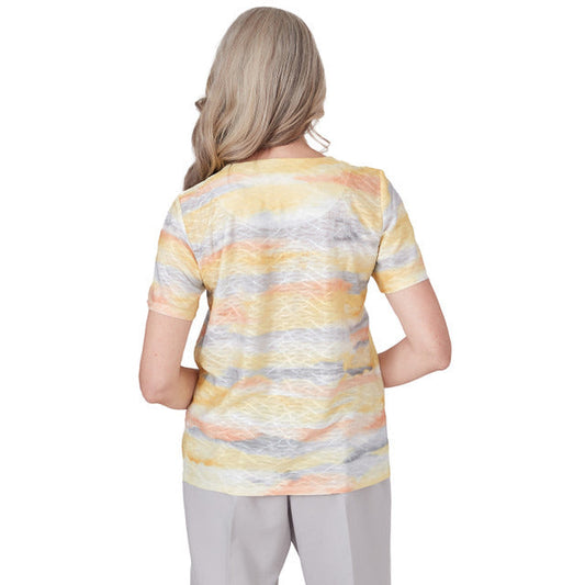 Alfred Dunner Women's Spliced Crew Neck Wavy Stripe Top