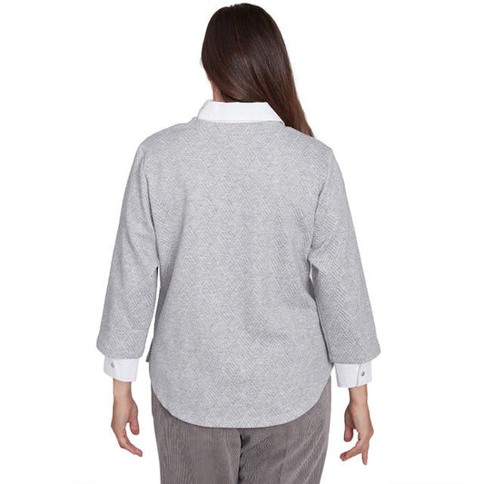 Alfred Dunner Women's Soft Collared Two In One Pullover Top with Necklace