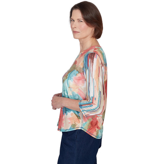 Alfred Dunner Women's Short Sleeve Crew Neck Top With Watercolor Print