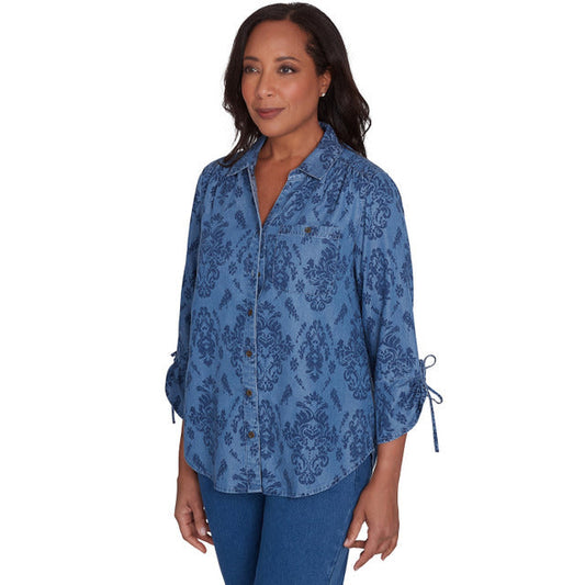 Alfred Dunner Women's Soft Tencel Button Front Top