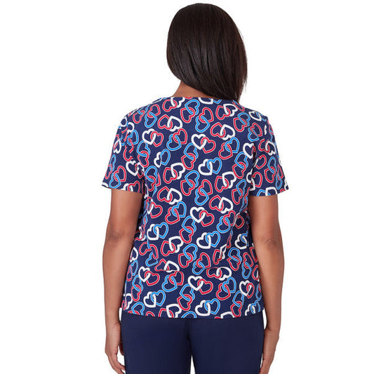 Alfred Dunner Women's Short Sleeve Linking Hearts Top