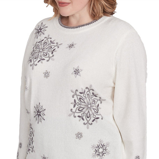 Alfred Dunner Women's Snowflake Embroidered Chenille Sweater