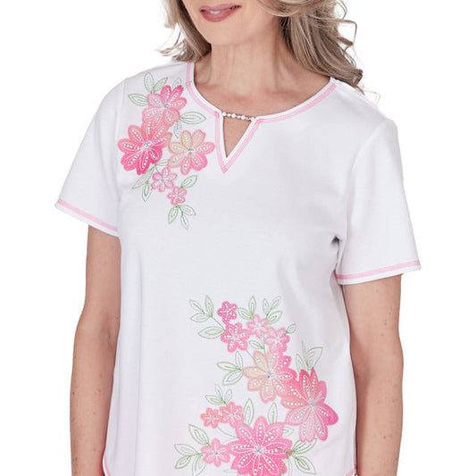 Alfred Dunner Women's Short Sleeve Floral Applique Top