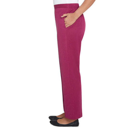 Alfred Dunner Women's Soft Microfiber Side Seam Pocket Short Length Pant - WINE