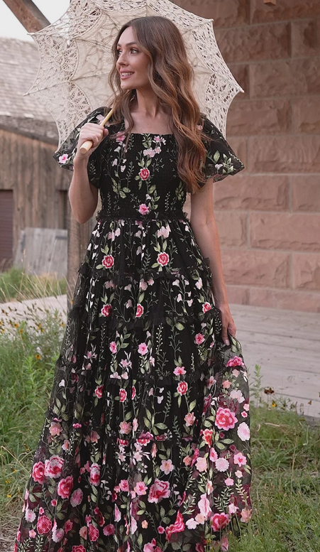 JessaKae Rose Dress - Maxi - Black