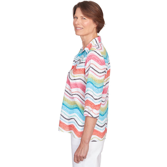 Alfred Dunner Women's Wavy Stripe Button Down Top
