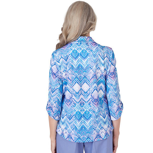 Alfred Dunner Women's Zig Zag Button Down Blouse
