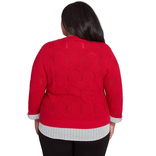 Alfred Dunner Women's Woven Chevron Sweater with Necklace