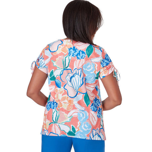 Alfred Dunner Women's Whimsical Floral Top With Side Ties