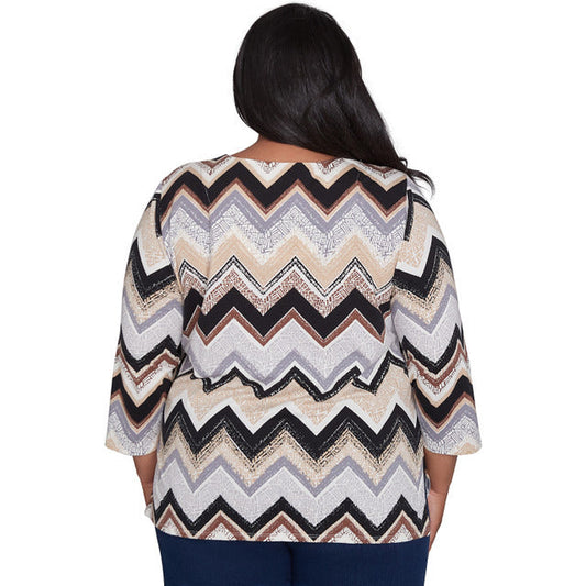 Alfred Dunner Women's Zig Zag Split Neck Top